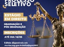 A Prefeitura de Muriaé está com inscrições abertas para dois processos seletivos de estágio na Procuradoria Geral do Município (PGM). As oportunidades são para acadêmicos de Direito, em nível …