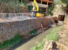 As obras de canalização a céu aberto do córrego que passa junto à estação de tratamento de esgoto do Safira, com a construção do muro de gabião no mesmo …